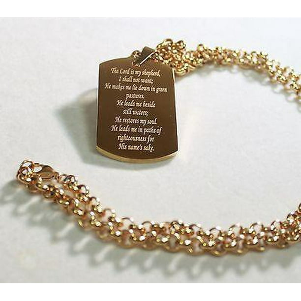 Psalm 23 Thick Ipg Gold Necklace Dog Tag Stainless Steel Rolo Chain Walmart Com