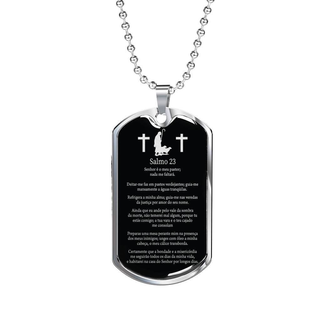 Salmo 23 Psalm 23 Portuguese Necklace Stainless Steel Or 18k Gold Dog Tag W 24 Chain Walmart Com